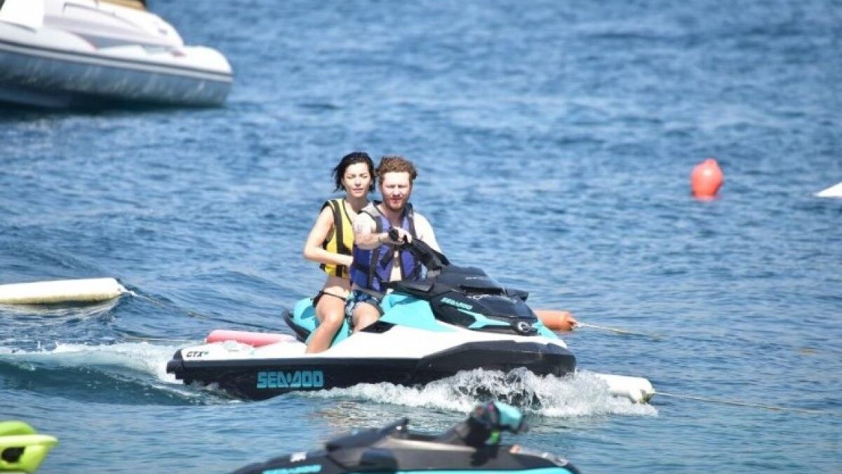 Çift önce jet ski ile açılarak denizde keyifli anlar yaşadı. Jet ski keyfi sonrası Beache dönen ikili güneşlenerek sohbet ederken, Boluğur kendini müziğin ritmine kaptırarak bol bol dans dans etti.
