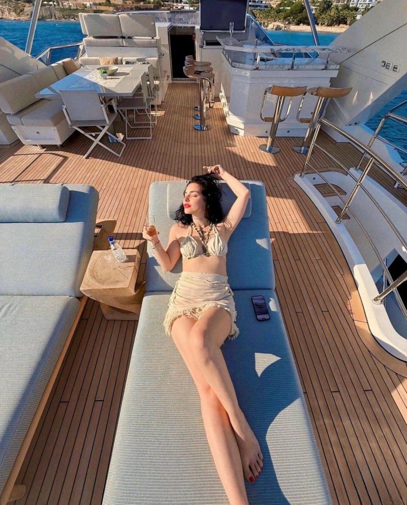Soluğu Çeşme'de alan Boluğur şimdi de lüks teknede verdiği pozlarla dikkat çekti.