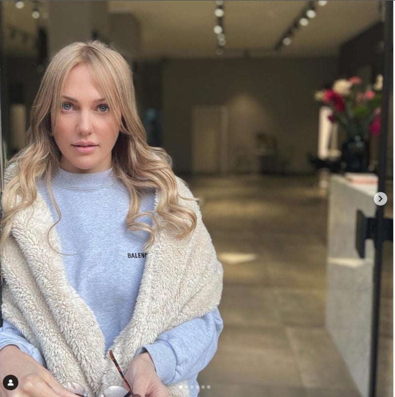 Uzerli'nin sıcak küllü bir sarı gibi gözüken fakat ışıkta platine kaçan saçları sosyal medyada ilgi gördü.