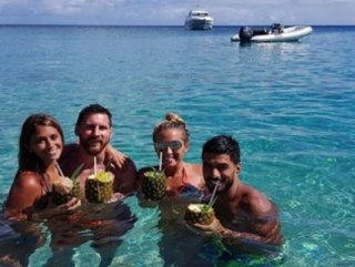 Çiçeği burnunda evliler, önceki gün Messi'nin Barcelona'dan takım arkadaşı Luis Suarez ve eşi Sofia ile plajda görüntülendi. Çiftler denizin tadını çıkardı.