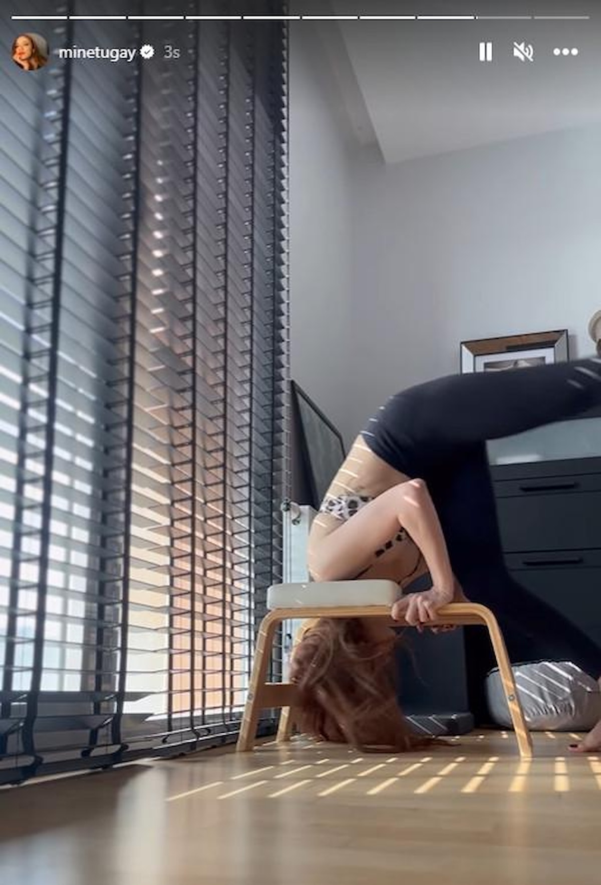 Hikaye kısmından yayınladığı videoda amuda kalkan Tugay, esnekliği ile büyük beğeni topladı.