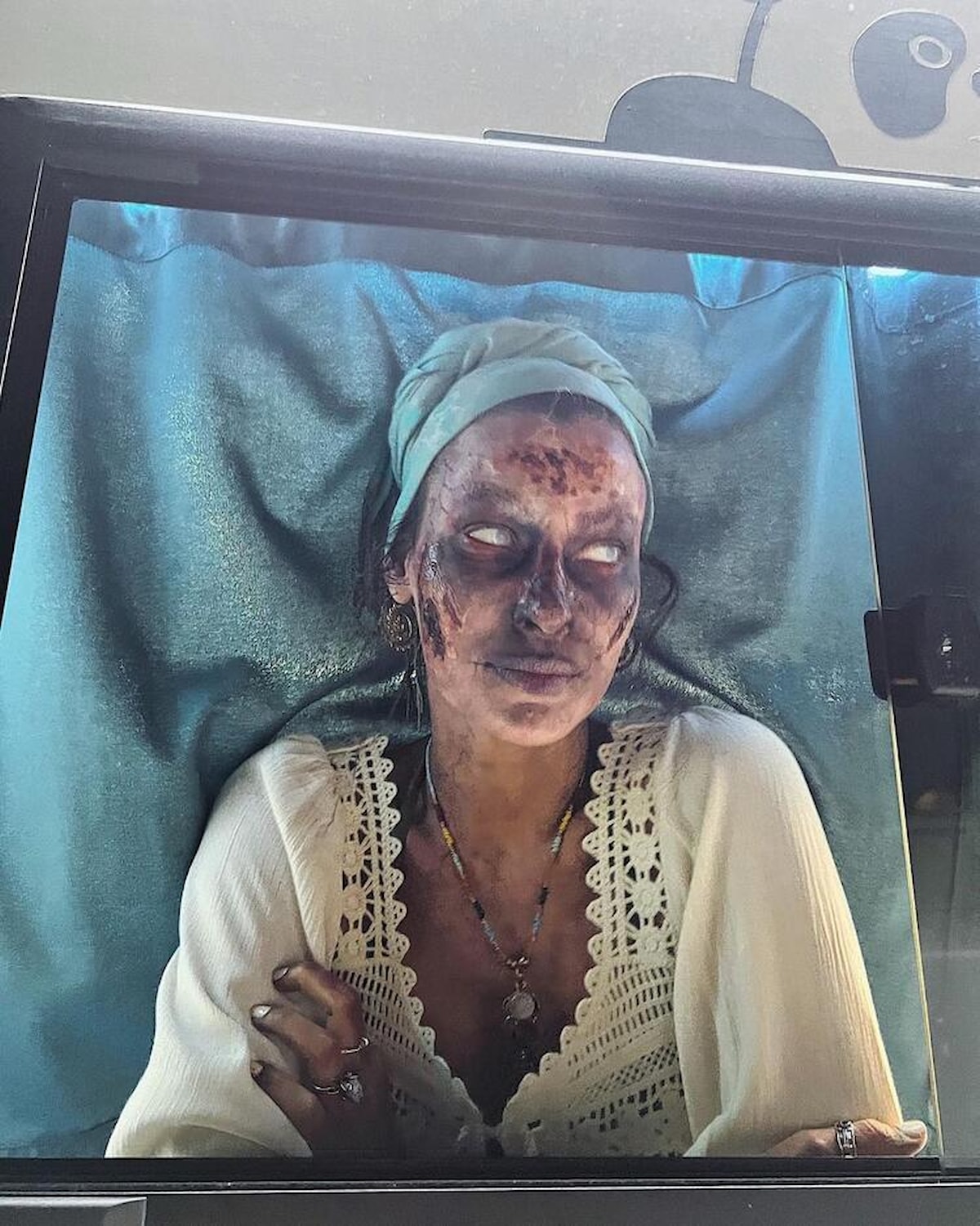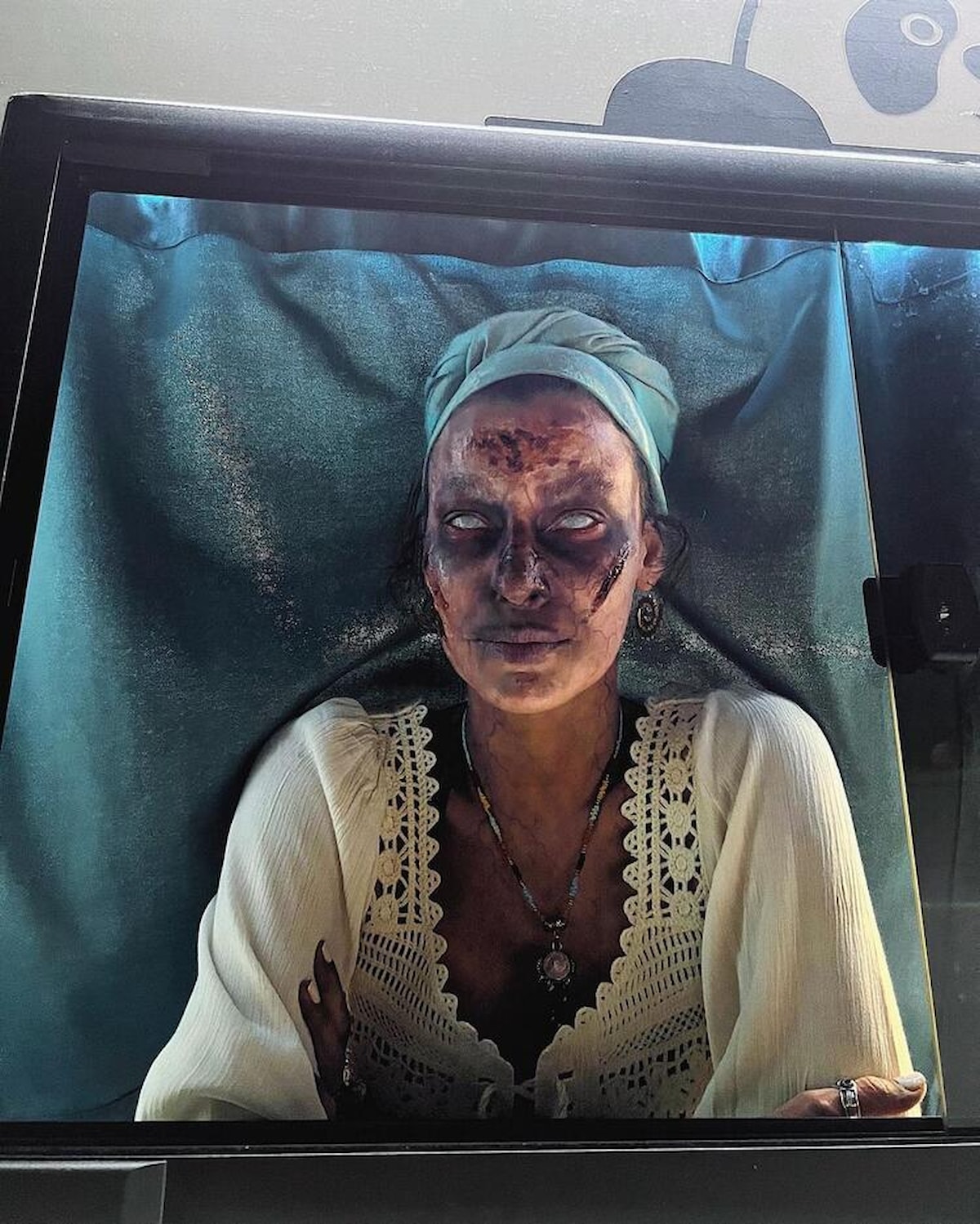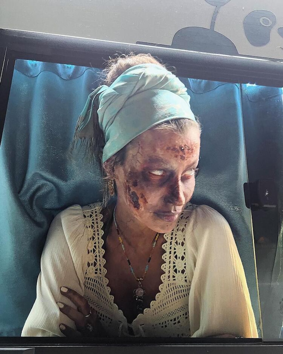 Plastik makyajla bambaşka bir görünüme kavuşan güzel oyuncuya sosyal medyada yorum yağdı. Müjde Uzman, geçen hafta vizyona giren 'Kutsal Damacana 4' filminde medyumu canlandırıyor.