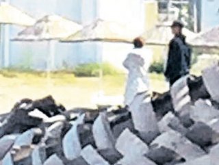 Sahilde yürüyüş yapan çift zaman zaman birbirlerine sarılıp öpüştü.