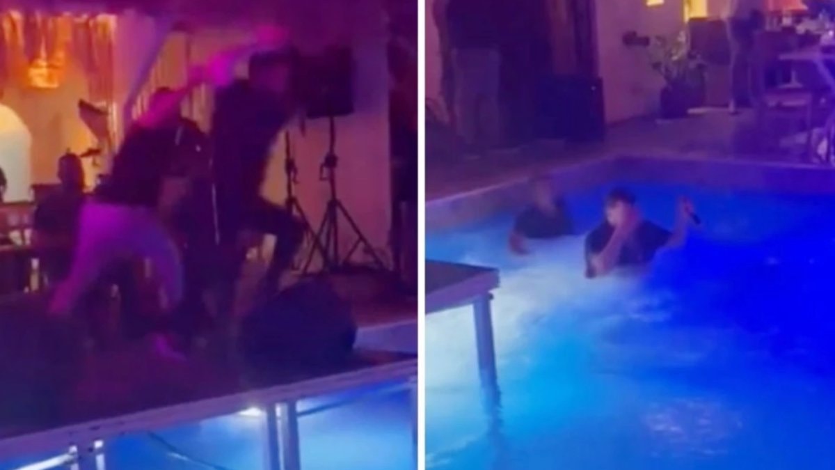 Şarkı söylerken bir anda hayranının hamlesiyle kendisini havuzda bulan türkücü neye uğradığını şaşırdı.