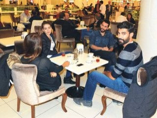 Oyuncu Murat Yıldırım, önceki gün Akmerkez’de oyuncu arkadaşlarıyla kahve içti.
