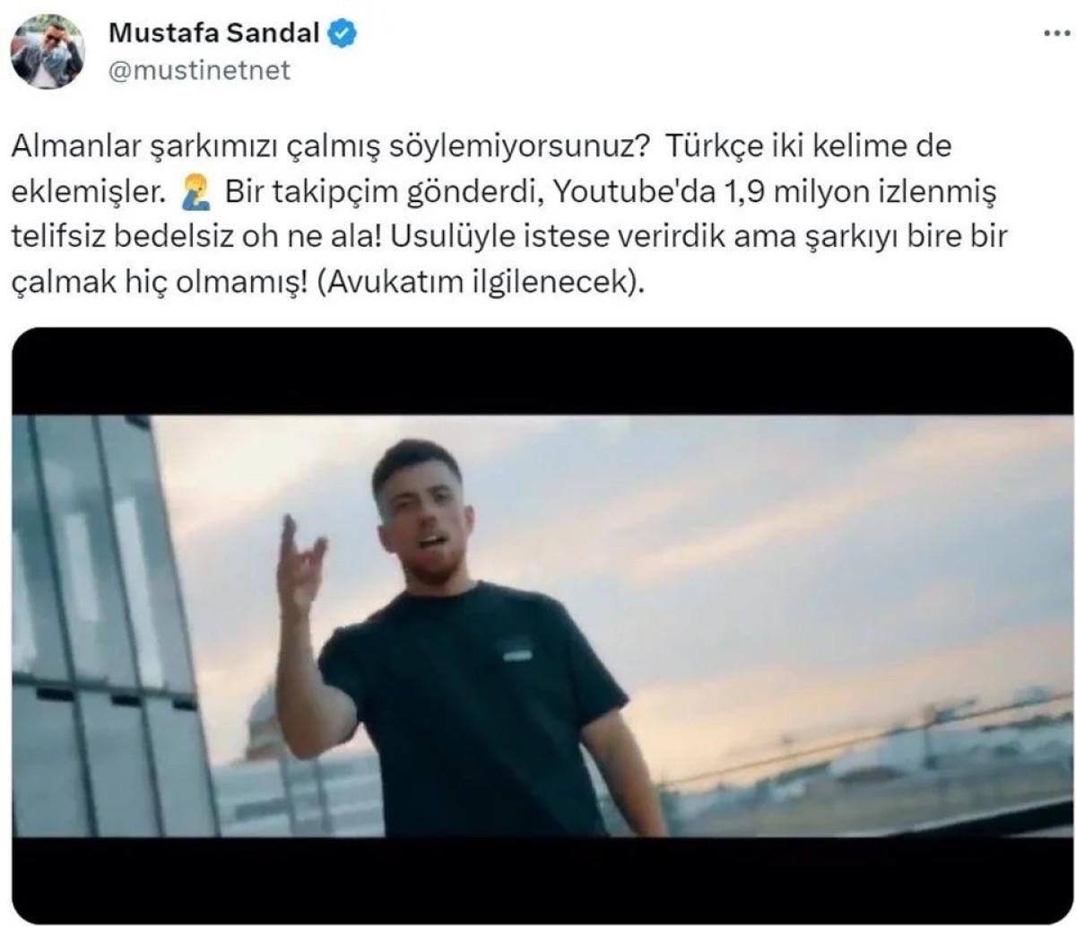 Sandal, paylaşımında “Almanlar şarkımızı çalmış söylemiyorsunuz! Türkçe iki kelime de eklemişler. Bir takipçim gönderdi.