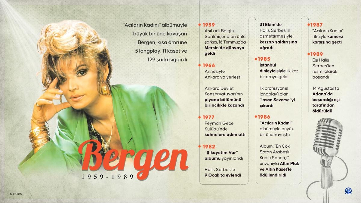 "Acıların Kadını" olarak anılan müzisyen ve arabesk şarkıcısı Bergen, vefatının 35. yılında yad ediliyor.