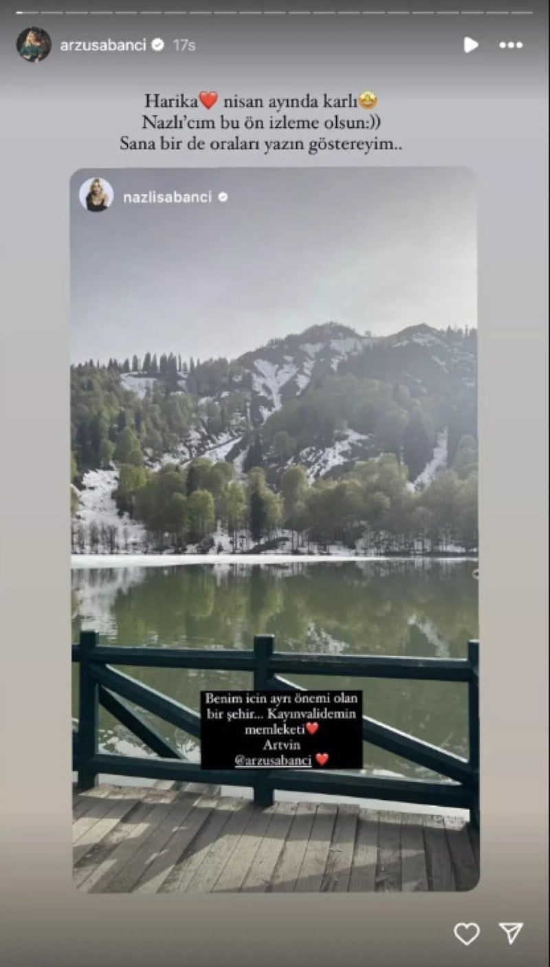 Artvin'den paylaşım yapana Nazlı Sabancı, gönderisine; "Benim için ayrı önemi olan bir şehir. Kayınvalidemin memleketi."