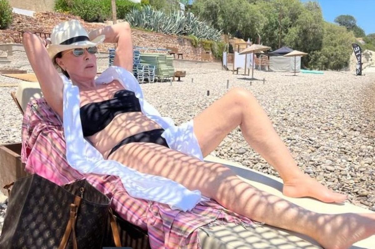 Arkadaşları ile keyif yapan 79 yaşındaki oyuncu, fit vücuduyla adeta genç kızlara nispet yaptı.