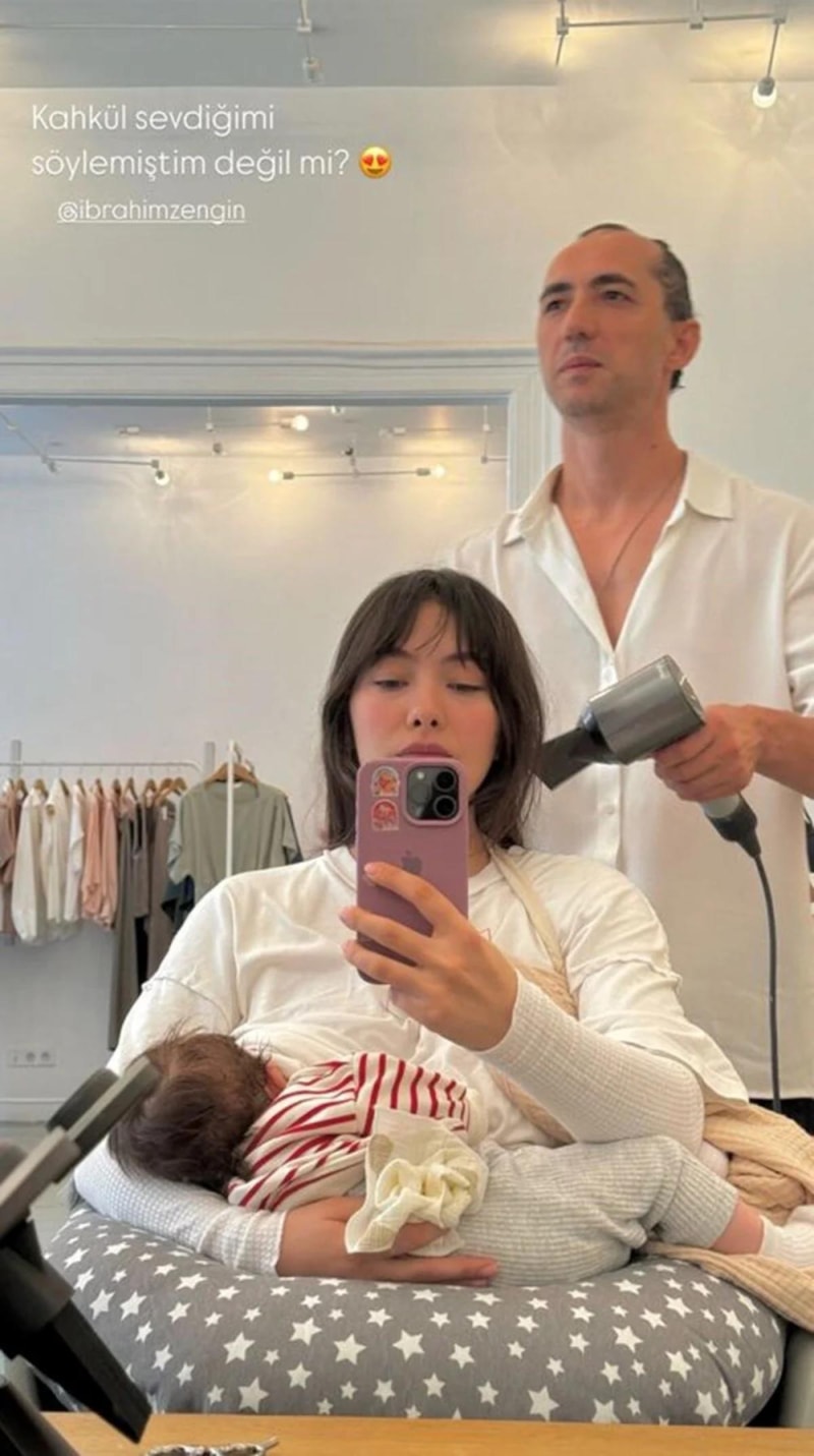Kuaföre giden 32 yaşındaki oyuncu, oğlu Aziz ile birlikte verdiği pozu takipçileriyle paylaştı.