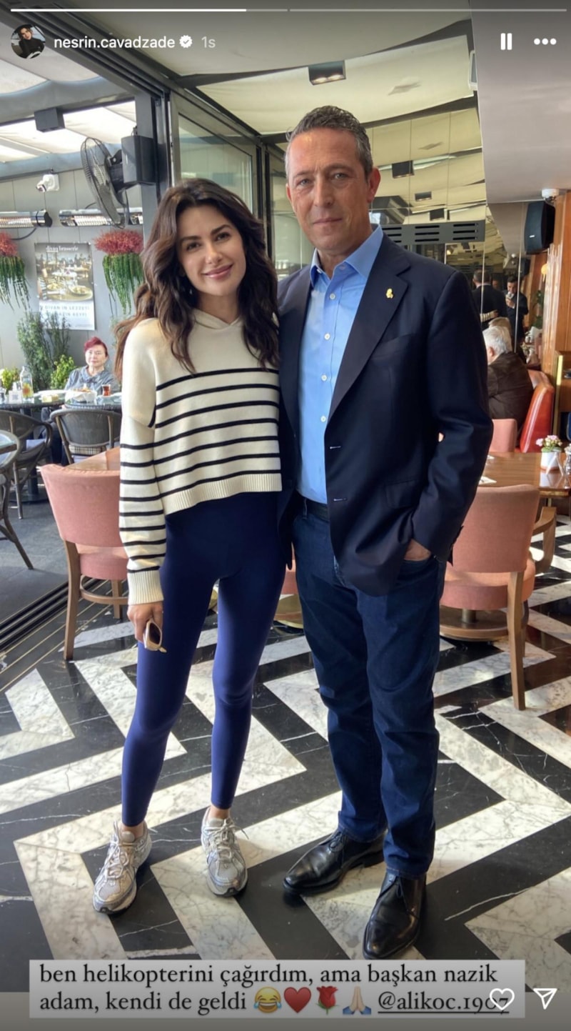 Başarılı oyunculuğu ve özel hayatıyla adından sıkça söz ettiren Nesrin Cavadzade, sosyal medya hesabından Ali Koç ile paylaşım yaptı.
