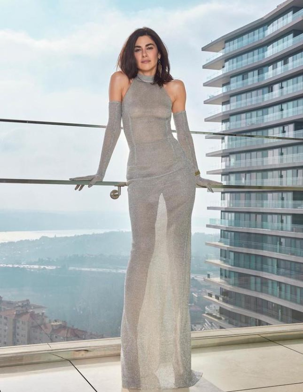 Son olarak yaptığı paylaşımdaki, mavi derin yırtmaçlı elbisesiyle olan fotoğrafını takipçilerinin beğenisine sunan oyuncu, yoğun ilgi gördü.
