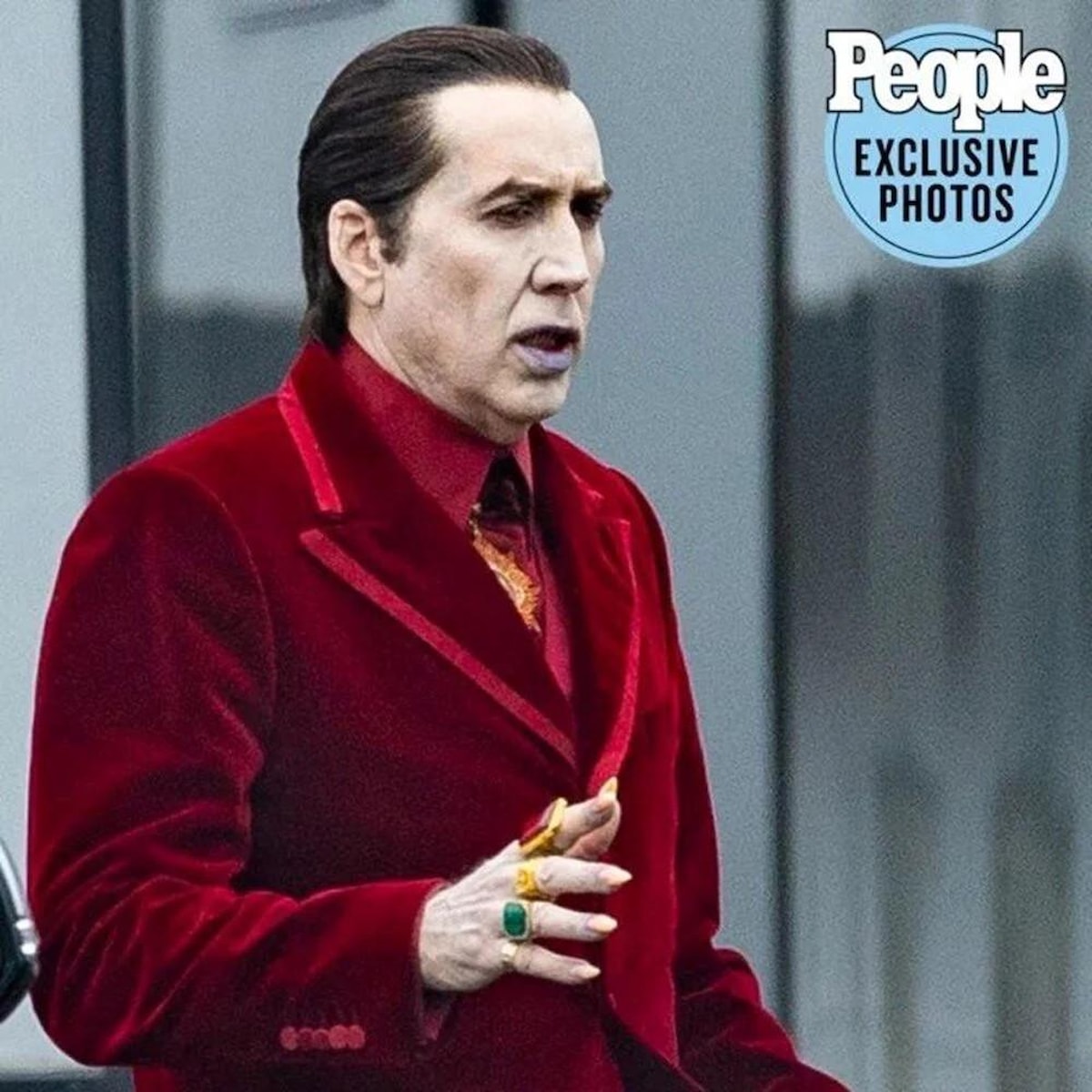 Kırmızı kadife takımı, bembeyaz yüzü ve morarmış dudaklarıyla Dracula karakterine bürünen Nicolas Cage'in görüntüsü gündem olmuştu.