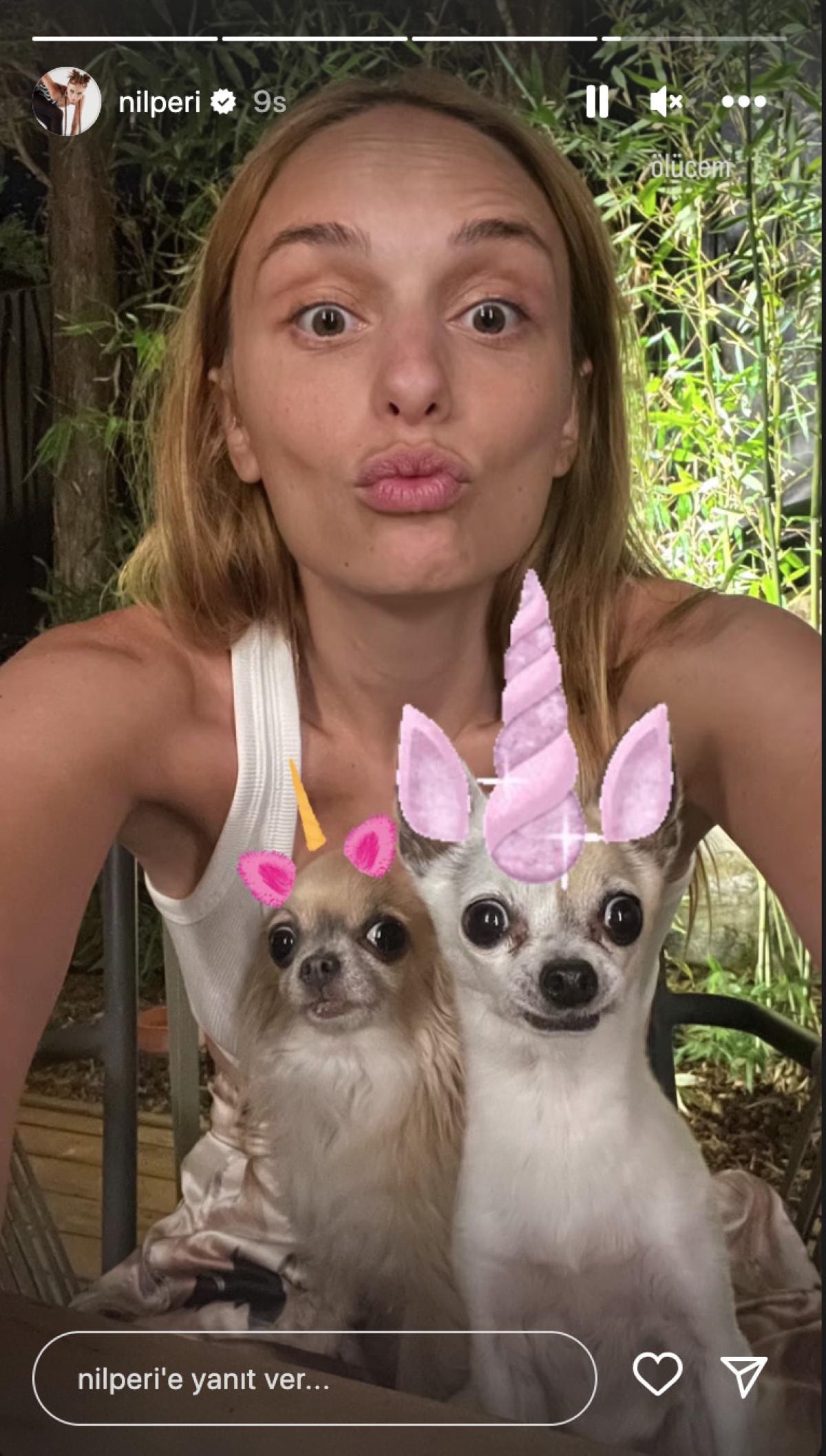 Güzel oyuncu bu defa köpekleriyle verdiği pozu Instagram hesabından yayınladı. Şahinkaya, paylaştığı fotoğrafa şu notu düştü: "Yeni doğurdum"