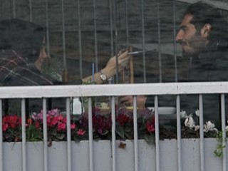 Rımelihisarı'nda görüntülenen çiftin keyfi yerindeydi. Kahvaltı yapan çiftten Feyza Veli, elleriyle beslediği nişanlısının "Bizi çekiyorlar" uyarısıyla çatalı masaya bıraktı.