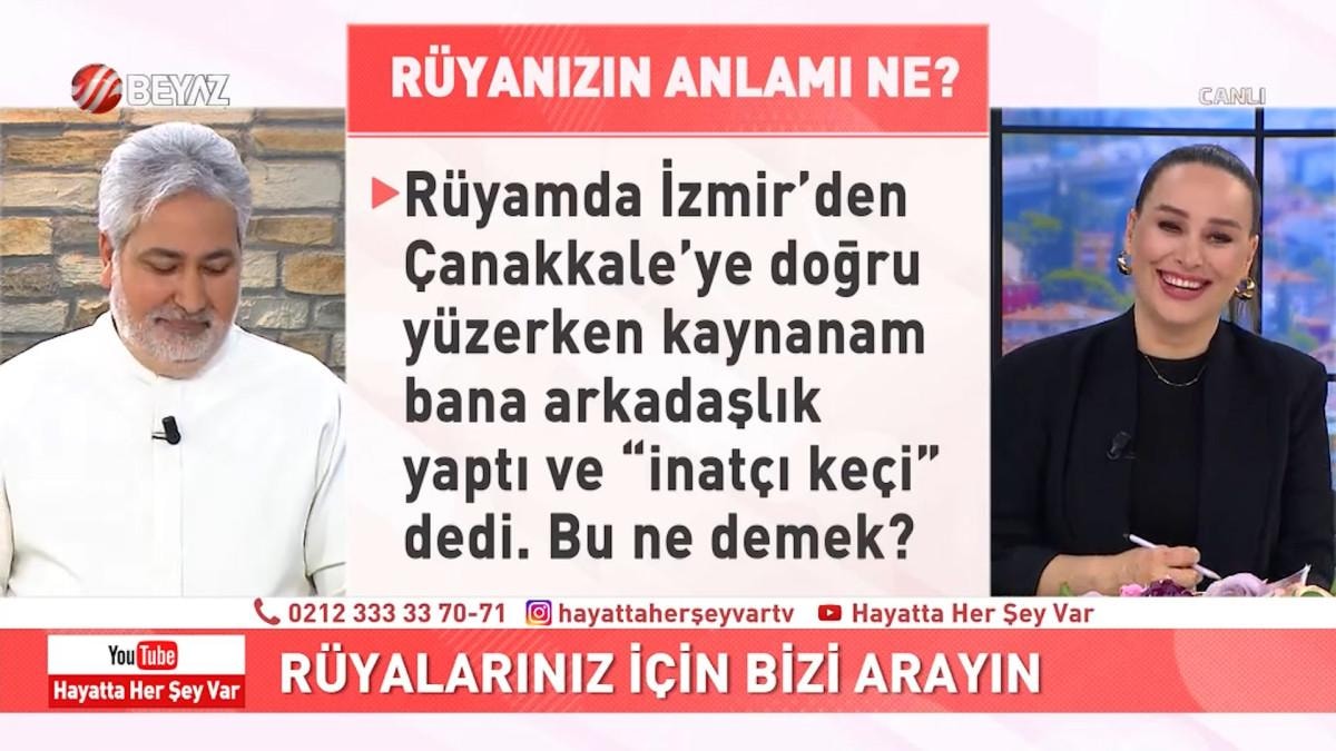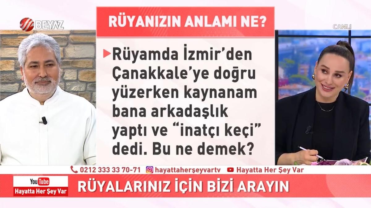 Seyirci, "Rüyamda İzmir'den Çanakkale'ye doğru yüzerken kaynanam bana arkadaşlık yaptı ve inatçı keçi dedi. Bu ne demek?" diye sordu.
