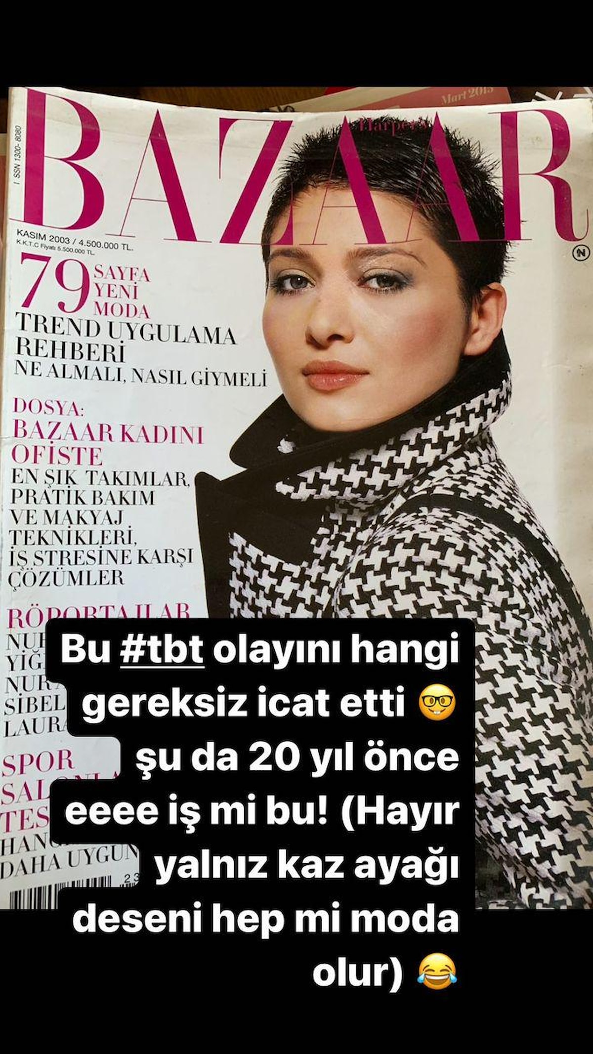 "Önümüze bakıyoruz yok bir daha tbt. Şu da 20 yıl önce e iş mi bu? Hayır yalnız kaz ayağı deseni hep mi moda olur"
