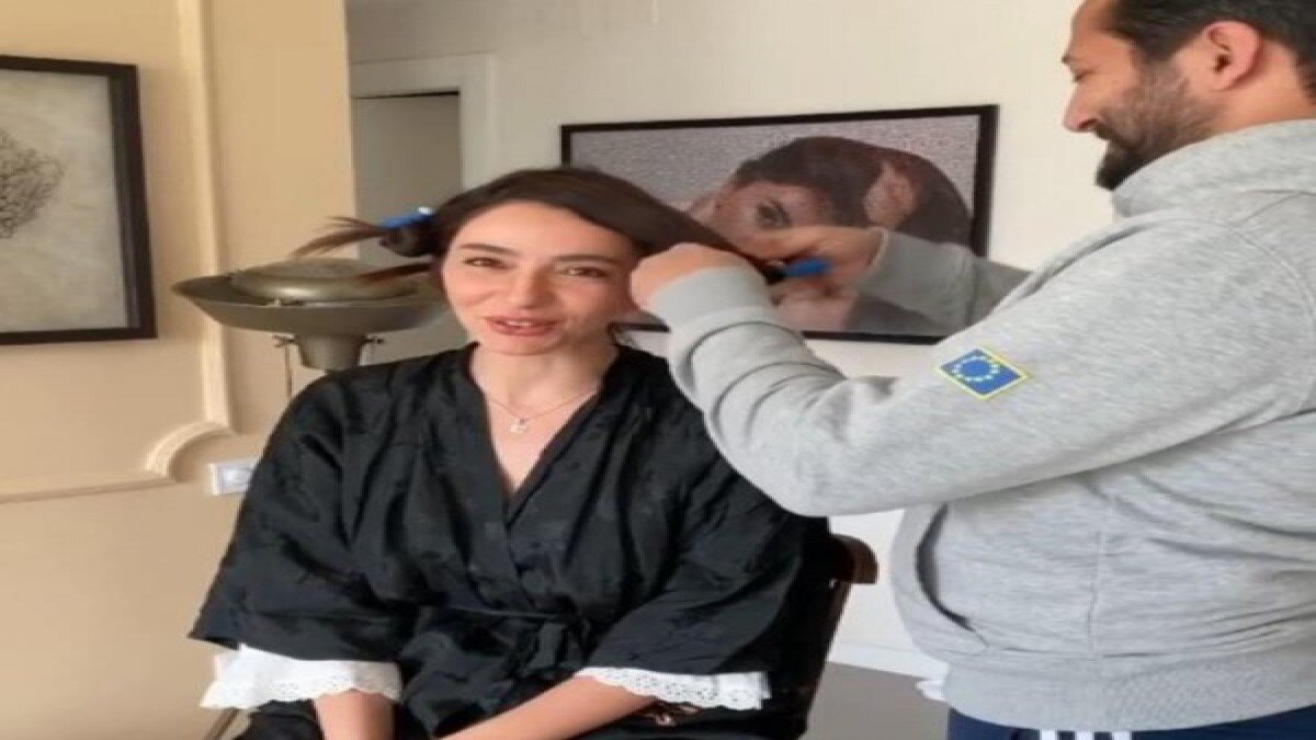 Koronavirüs salgını nedeniyle Öykü Gürman da evden çıkmayan ünlü isimlerden. Gürman, bu karantina günlerinde saçlarını sevgilisine emanet etti.