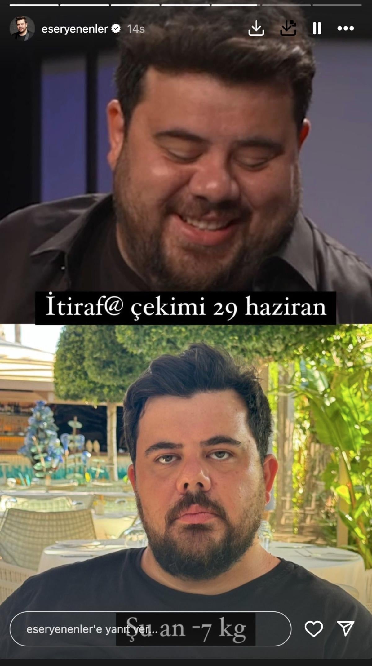 Eser Yenenler şimdi de verdiği kilolarla dikkat çekti. Ünlü isim 15 günde 7 kilo verdiğini açıkladı.