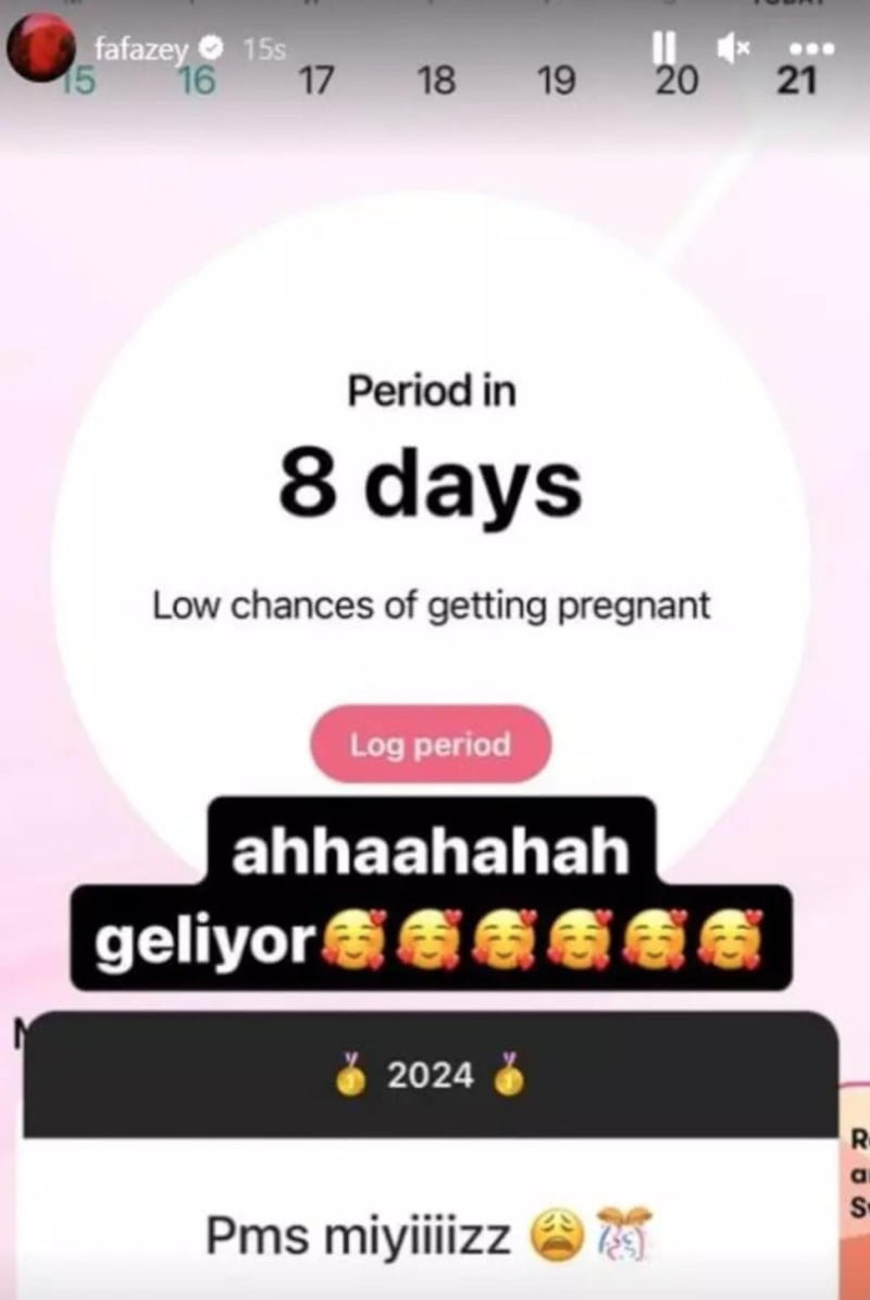 Abdullah, bununla da kalmadı ve "PSM miyiz?" sorusuna da tarih vererek yanıt verdi. Güzel oyuncu regl tarihini paylaşarak "Geliyor." dedi.