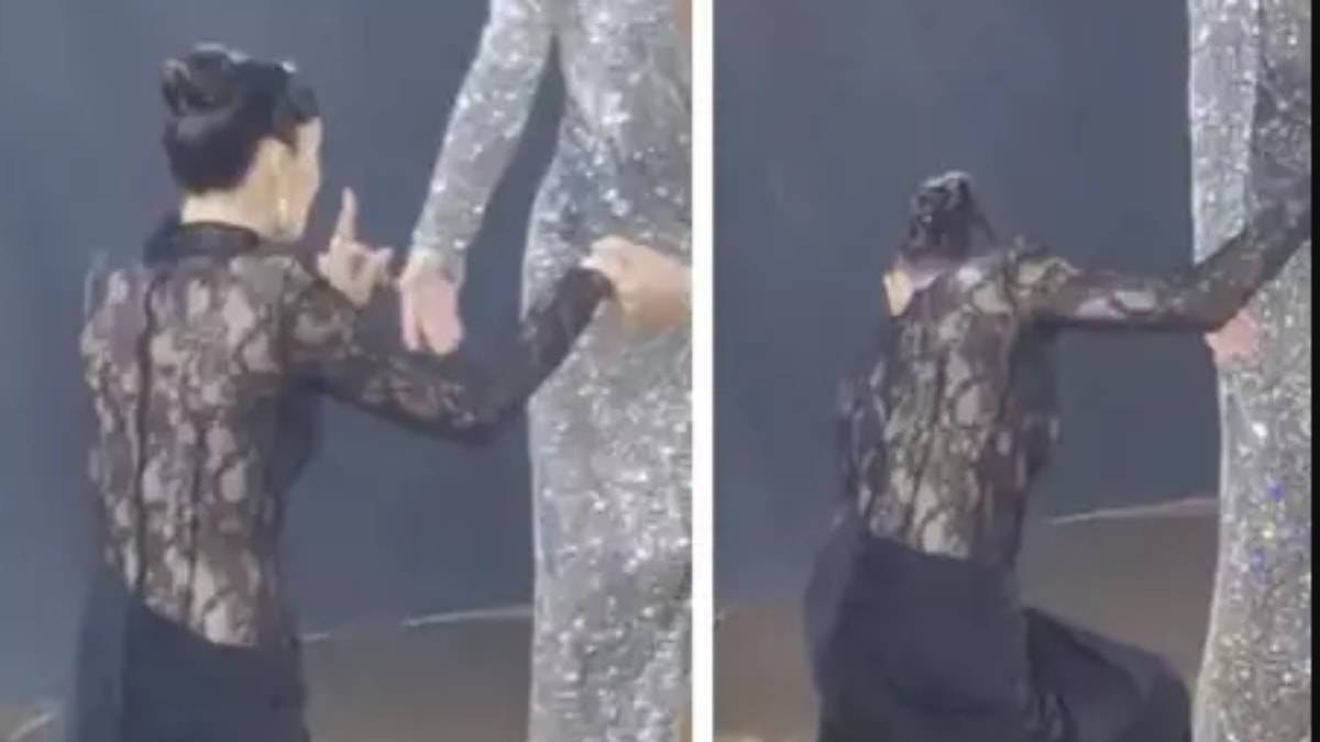 Gecede ödül alan Hande Erçel, sahneye çıkmak isterken elbisesiyle zor anlar yaşadı.