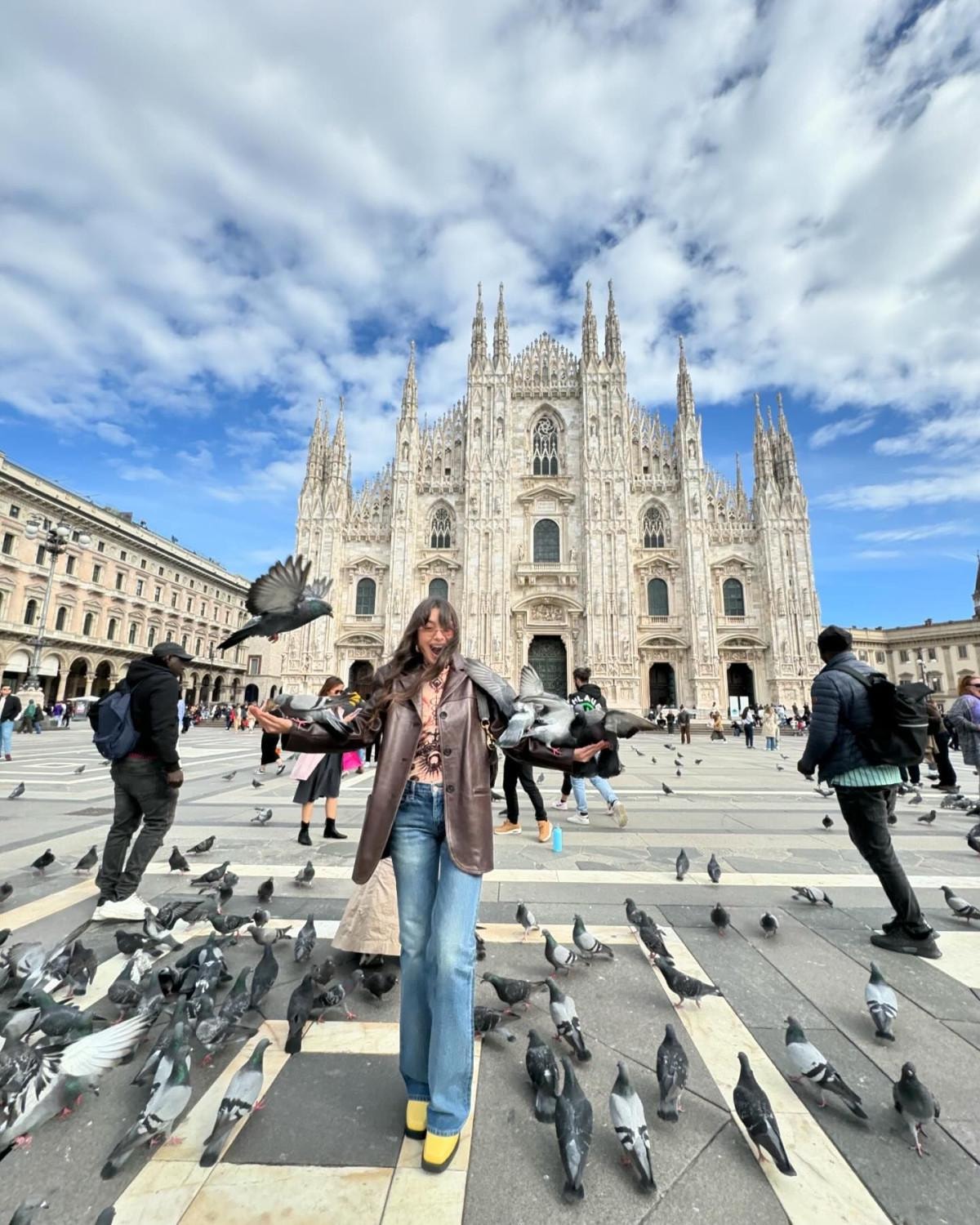 İtalya tatilindeki güzel oyuncu Milano sokaklarında gezdi, katedralleri ziyaret etti.