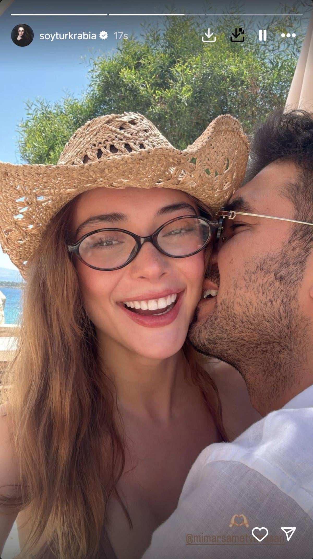 İkilinin keyifli halleri dikkatlerden kaçmadı. Sevgilisinin kendisini öptüğü bir kareyi yayınlayan oyuncu, kısa sürede sosyal medyada gündem oldu.
