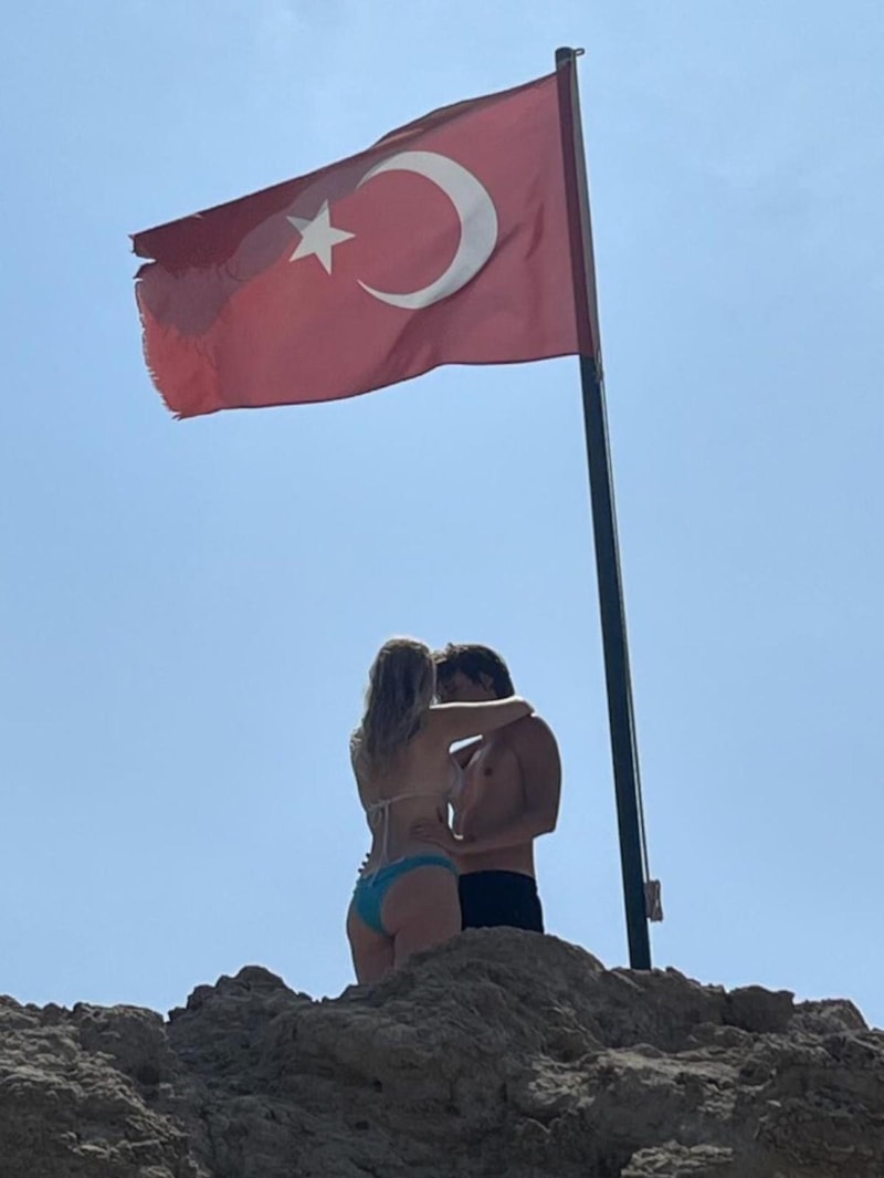 Yereli, bu kez de sevgilisiyle birlikte Türk bayrağı altında verdiği bikinili poz ile gündem oldu.