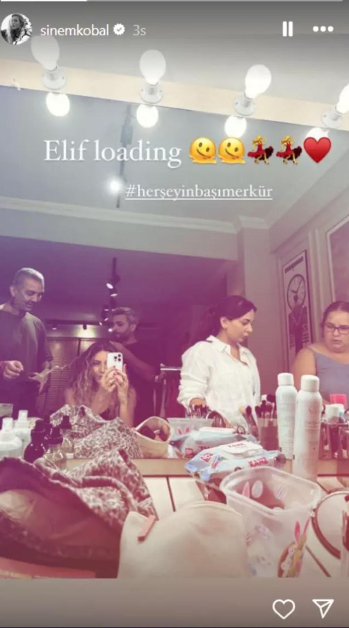 Sinem Kobal film için sete gitti ve sosyal medyadan da paylaşım yaptı.