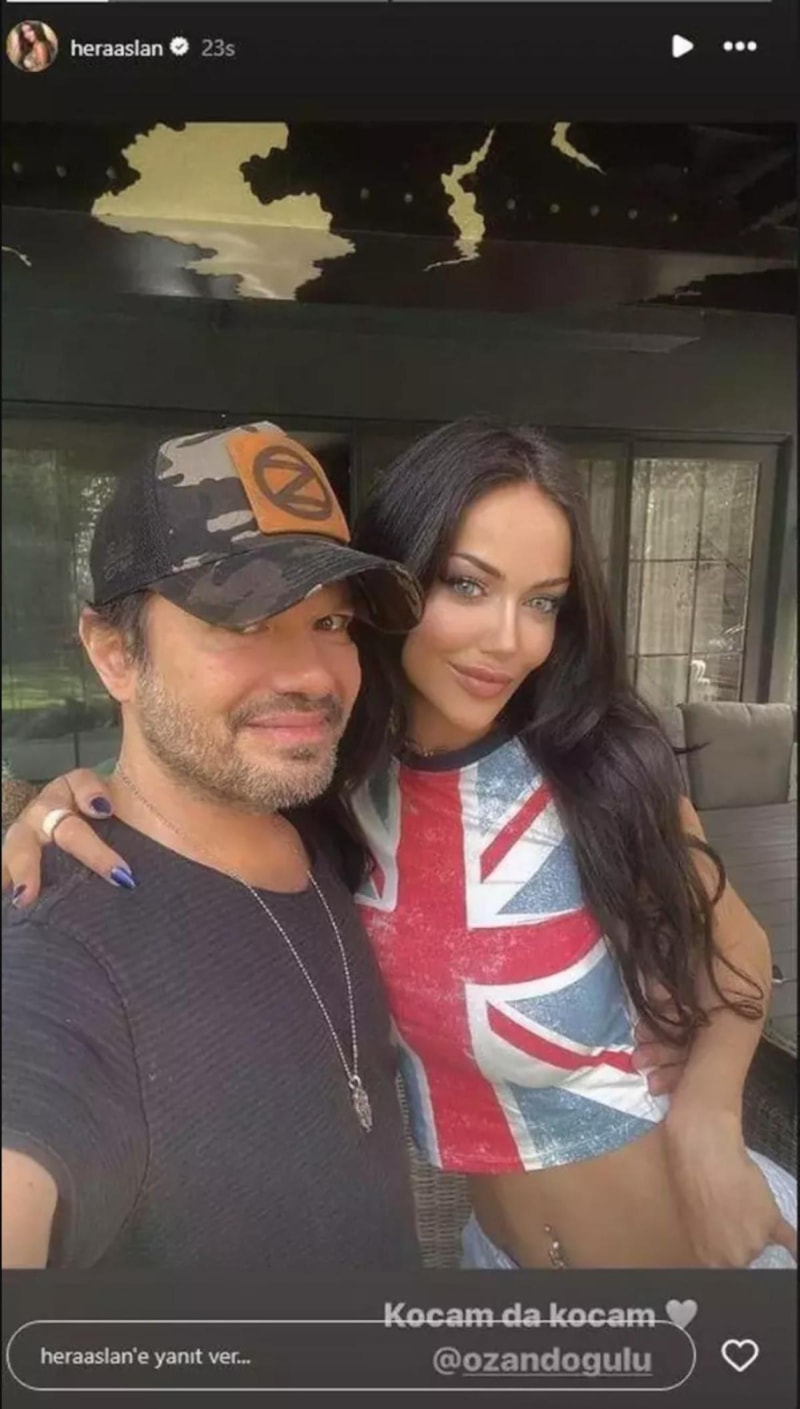Aslan, Doğulu ile çekilen bir karesini Instagram sayfasının hikayeler bölümünden yayınlayarak; "Kocam da kocam" mesajını yazdı.