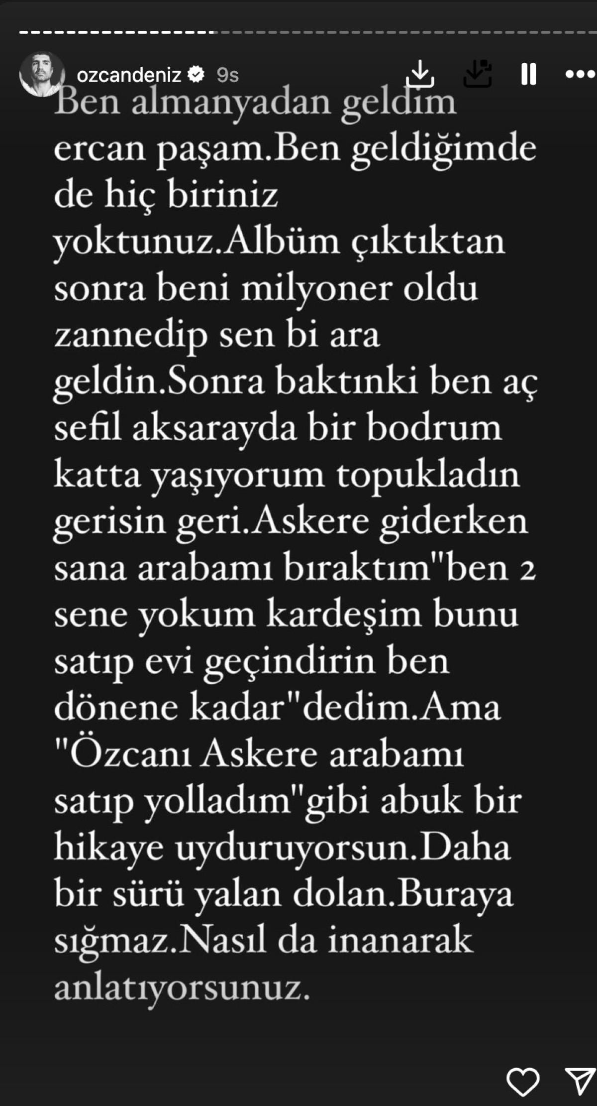 Özcan Deniz'in aile hayatındaki polemikler bitmek bilmiyor. Ünlü şarkıcı son olarak sosyal medya hesabından annesi ve ağabeyi Ercan Deniz'i hedef alan açıklamaları gündem oldu.