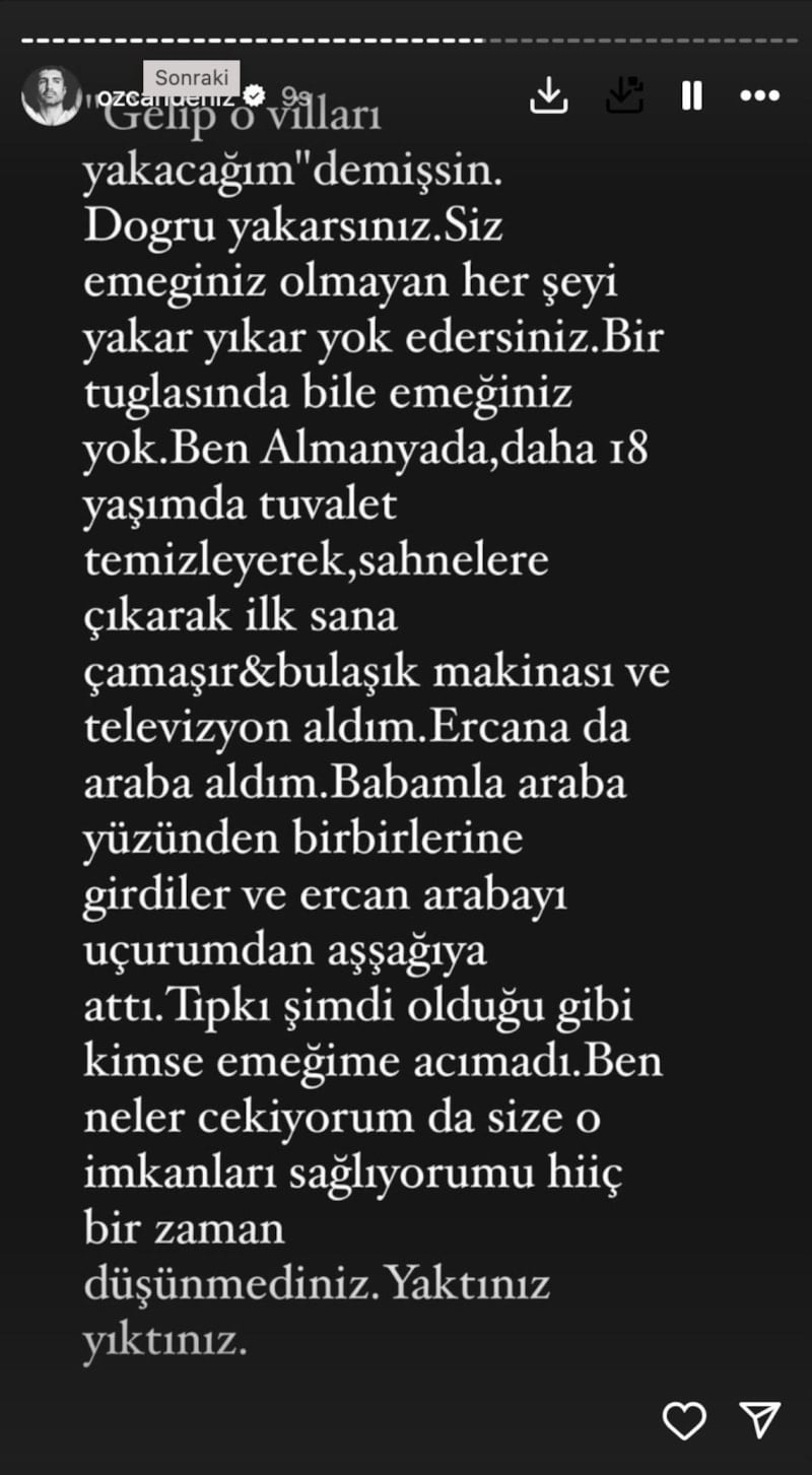 Ailesiyle yaşadığı kavgayla ilgili konuşmak istemediğini söyleyen Özcan Deniz, yine kendini tutamadı ve sosyal medya hesabından ateş püskürdü.