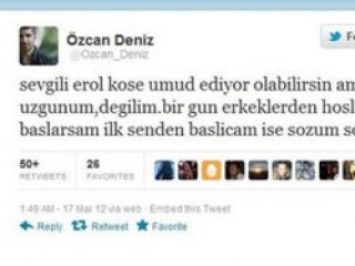 Sivri dilli yapımcı Kösenin attığı tweet üzerine Özcan Deniz iddialara aynı şekilde Twitter'dan yanıt verdi. Özcan Deniz, Erol Köse'ye 140 karakterde hem esprili hem de sert bir yanıt vermeyi başardı: "Sevgili erol kose umud ediyor olabilirsin ama uzgunum,degilim.bir gun erkeklerden hoslanmaya baslarsam ilk senden baslicam ise sozum soz."