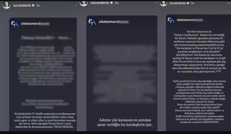 Yaşanan tartışmaların ardından Özcan Deniz'in kız kardeşi Sibel Semerci de Instagram hesabından uzun bir açıklama yaptı.
