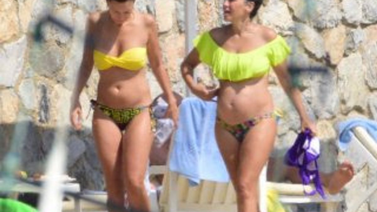 Yalıkavak'ta bir otelin plajında görüntülenen Aslı Tandoğan ile Özge Özder sıcak havadan bunalıp bol bol deniz sefası yaptı.