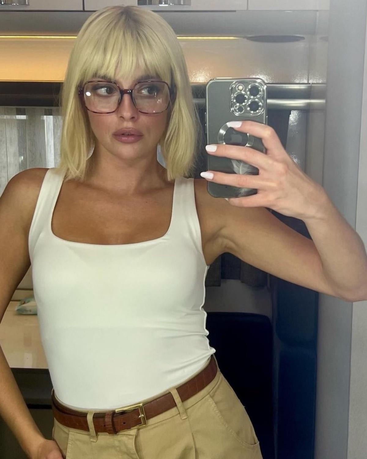 Sarı kısa saçları ile poz veren Melis Sezen, Ajda Pekkan’a benzetildi.