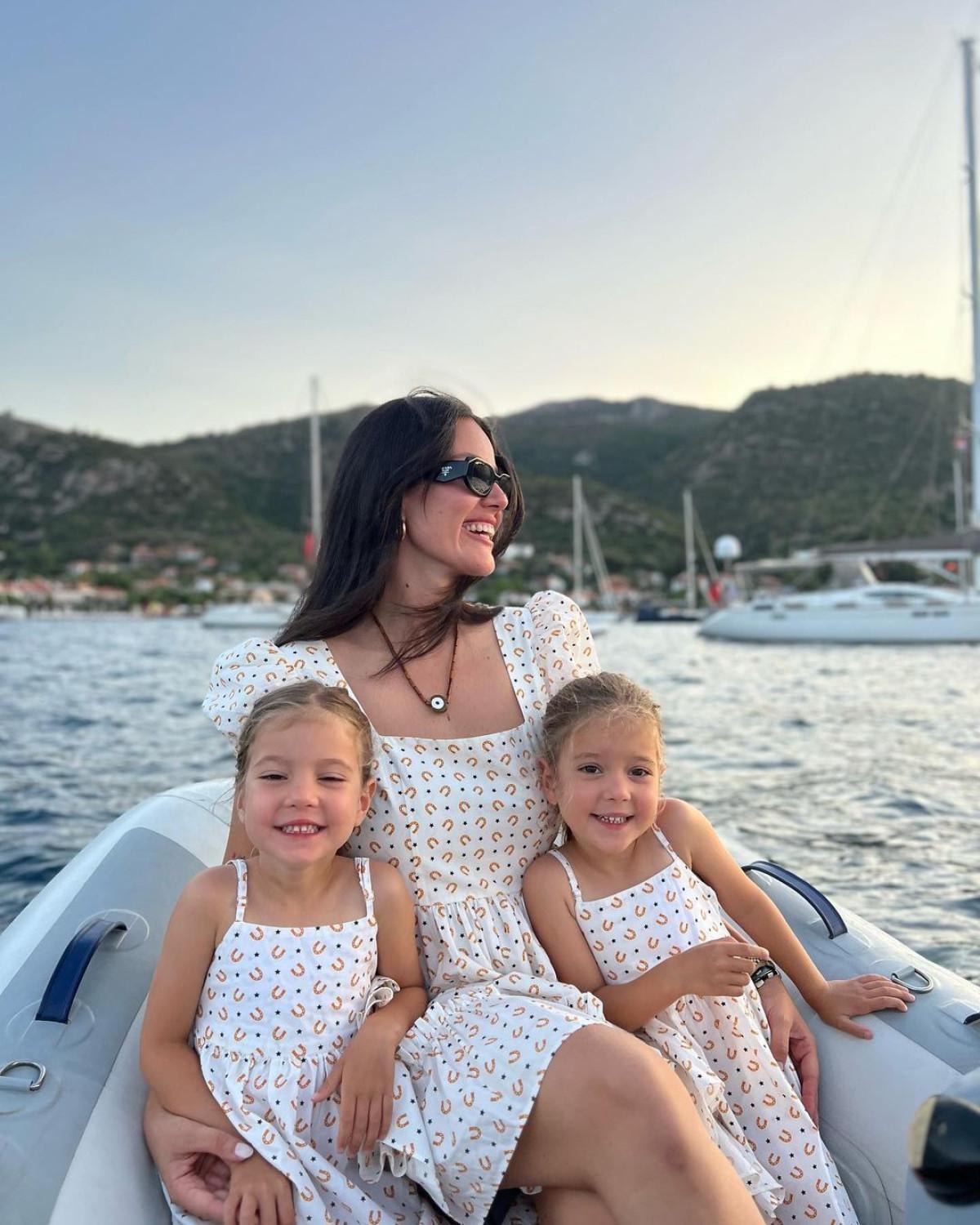 Güzel oyuncu, eşi ve kızlarıyla tekne sefası yaptı. Kızlarıyla aynı kıyafeti giyen Pelin Akil ve ikizlerine ise beğeni yağdı.