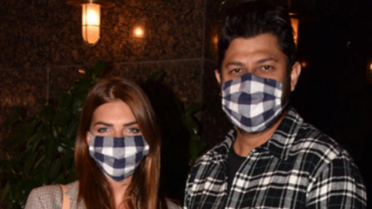 Çiftin birbirleriyle uyumlu maskeleri dikkat çekti.