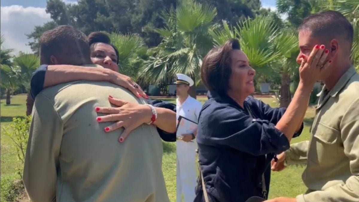 Bedelli askerlik yapan oğlunu almak için İskenderun’a giden usta oyuncu, oğluna kavuştuğu anlarda gözyaşlarını tutamadı.