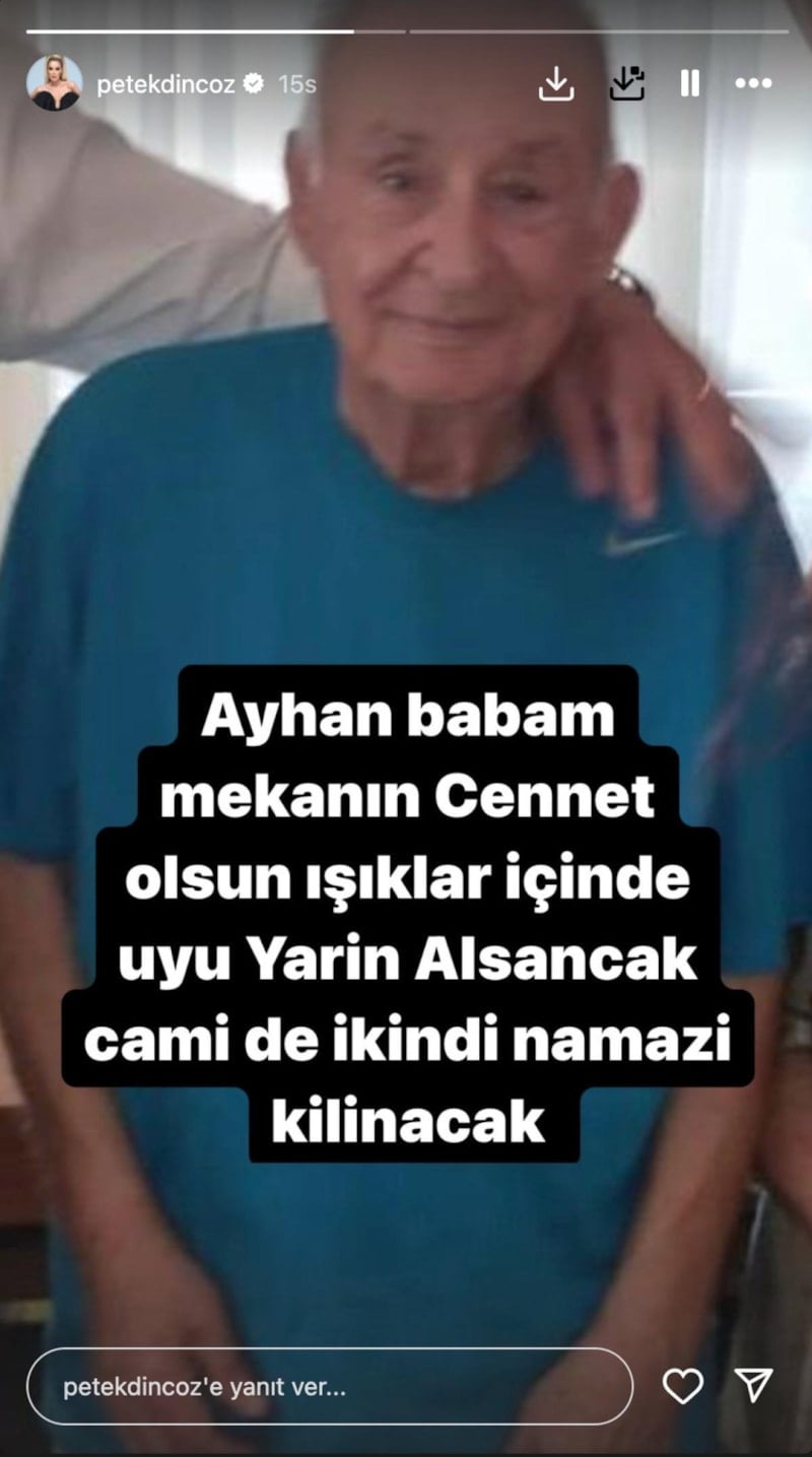 Dinçöz, "Ayhan babam mekanın cennet olsun. Işıklar içinde uyu. Alsancak Camii'nde ikindi namazı kılınacak." ifadelerini kullandı.