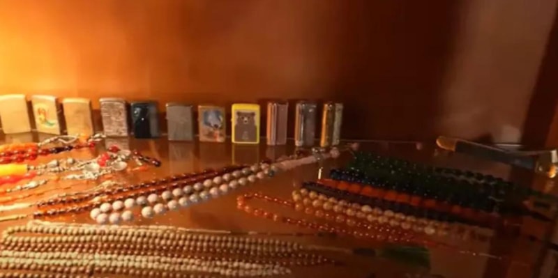 Evde dikkat çeken detaylardan biri ise tespih koleksiyonu oldu. Yenilebilir altın tozundan oluşan şık tespihler, görenleri kendisine hayran bıraktı.
