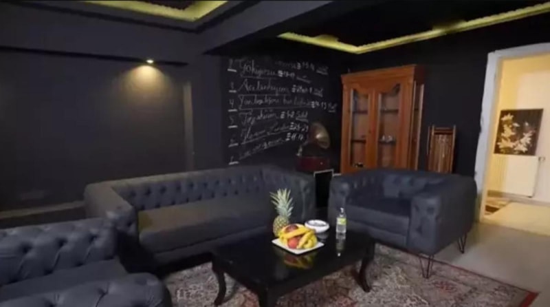 Siyah tonlarının hakim olduğu evinde, şarkıcının deri koltukları ve siyah perdeleri dikkat çekti.