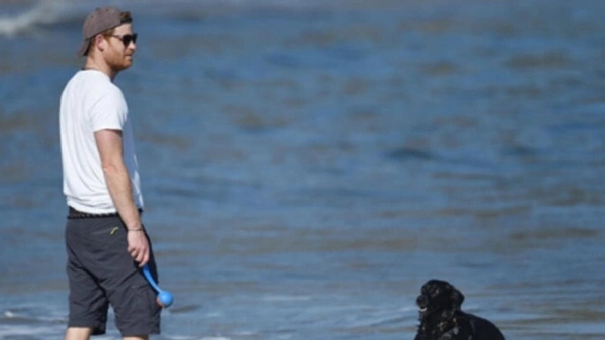 Bir şort bir tişört ve bir de beyzbol şapkası giyen Harry, ayakkabılarını da çıkarıp kumsalda yürüyüş yaptı.