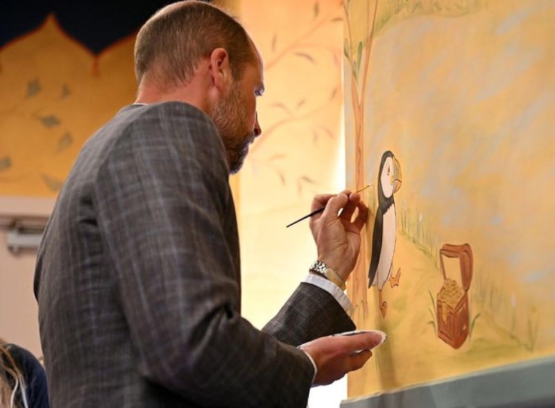 Hem Kate Middleton hem de Prens William, merkezde çocuklar için duvarlara da resimler çizdi.