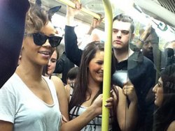 Beraberinde kalabalık bir grupla birlikte metroya binen Rihanna, hayranlarıyla fotoğraf çektirmeyi ihmal etmezken, Twitter bir anda ünlü şarkıcının hayranlarının yüklediği fotoğraflarla dolup taştı.