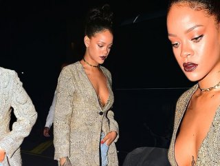 Yine şıklığıyla dikkat çeken Rihanna, tüm bakışları üstüne topladı. Belçikalı modacı Dries van Noten imzalı 6 bin lira değerindeki ceketinin içine bir şey giyme gereği duymadı.