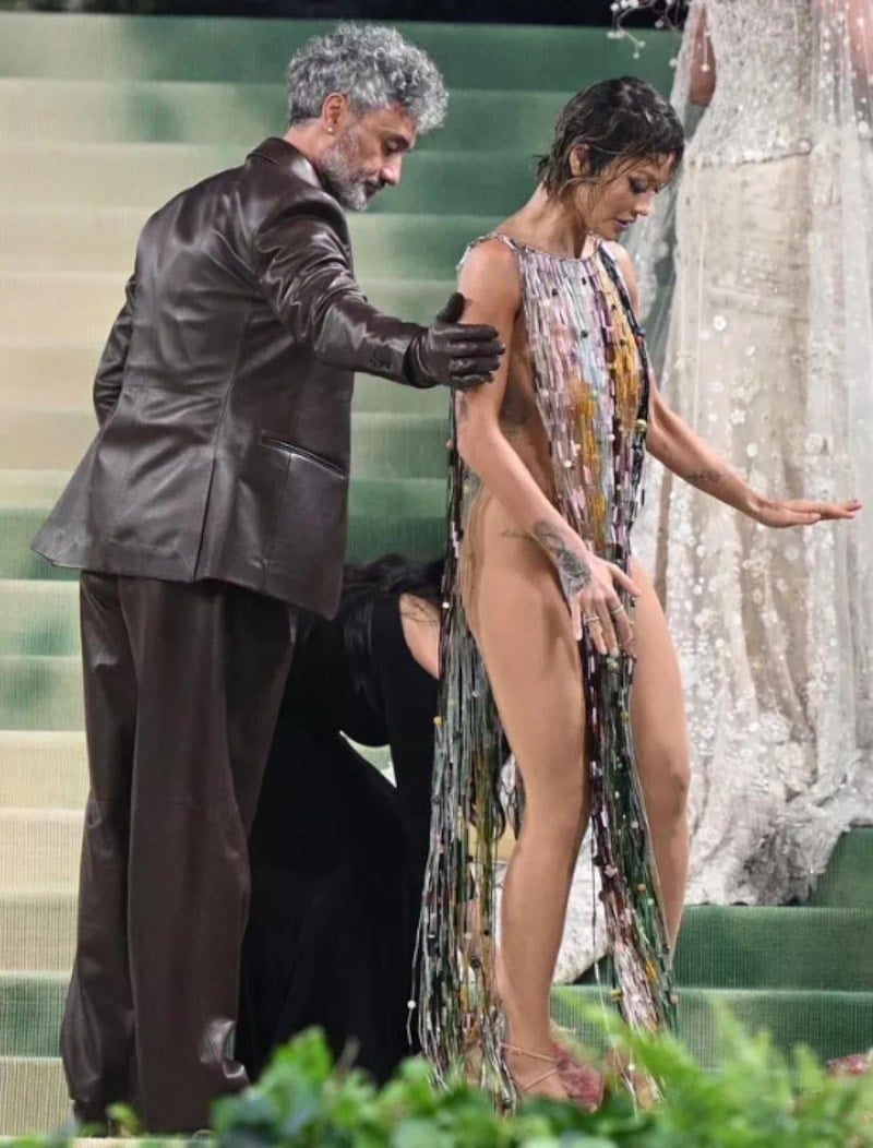 Fiziğini tamamen açık bir şekilde sergileyen Rita Ora kırmızı halıda zor anlar yaşarken imdadına kocası Taika Waititi yetişti. Ünlü ismin kocası, elbisesinin arka kısmını düzelterek ona yardımcı oldu.