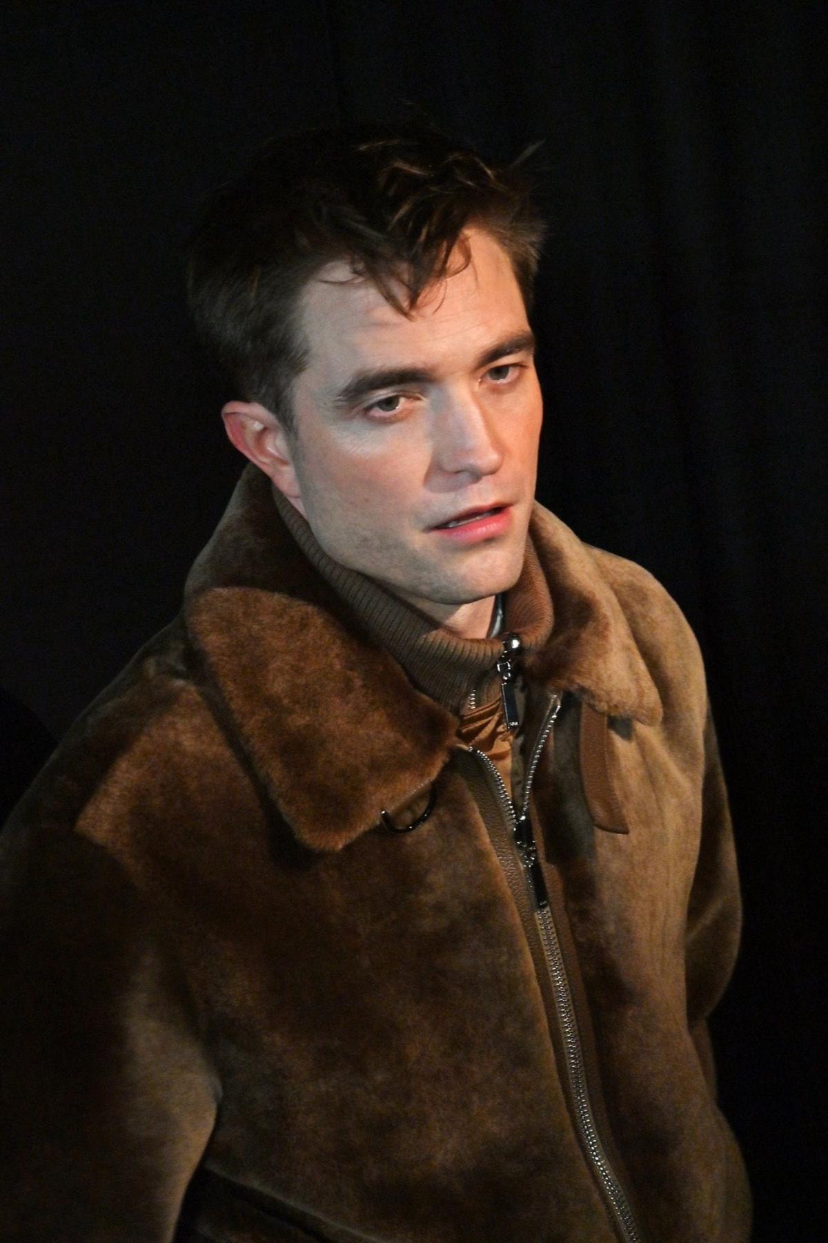 Tasarımcının erkek giyim defilelerinin ön sıralarında yer alan “Alacakaranlık” yıldızı, bugünkü kış koleksiyonunu izlemek için sürpriz bir kıyafet giydi.