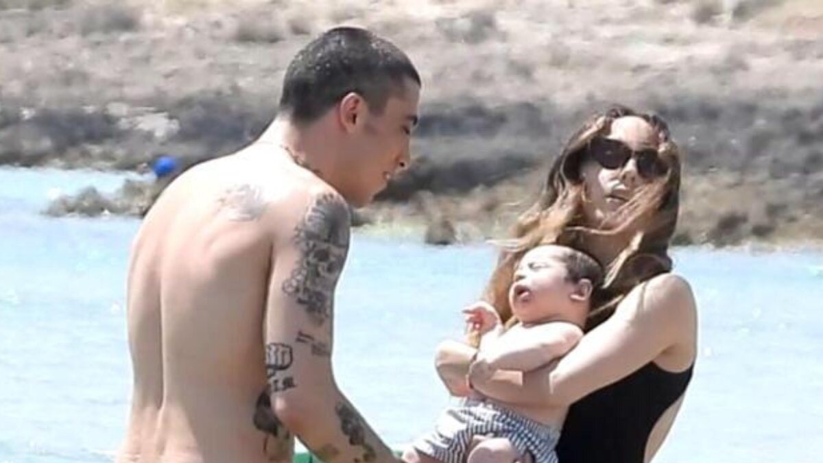 Yaz sezonunu Çeşme’de açan Can Bonomo ve Öykü Karayel, geçen cuma günü plajdaydı. Öğlen saatlerinde denize giren çift, minik bebeği de el ve ayaklarını suya sokarak serinletti.