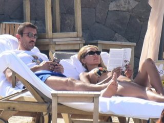 Reçber çifti önceki gün özel plajlarında güneşlendi. Eski kaleci, görüntülendiklerini fark edince çocuklarıyla birlikte eve çıktı.